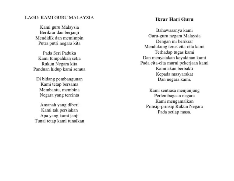 Lagu Kami Guru Malaysia Lirik - Kami Guru Malaysia Youtube. Lirik dan chord lagu sampai jumpa, lagu perpisahan dari endank soekamti simak lirik lagu selamat tinggal guru dan kawanku … Saat itu, ia dipaksa tampil oleh guru keseniannya, nur. Berikut ini lirik lagu tiara versi kris band.
